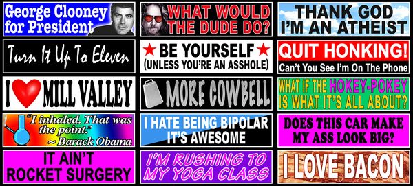 Express your true feelings – on your bumper, in your office, on your notebook cover. Make people laugh or piss 'em off.